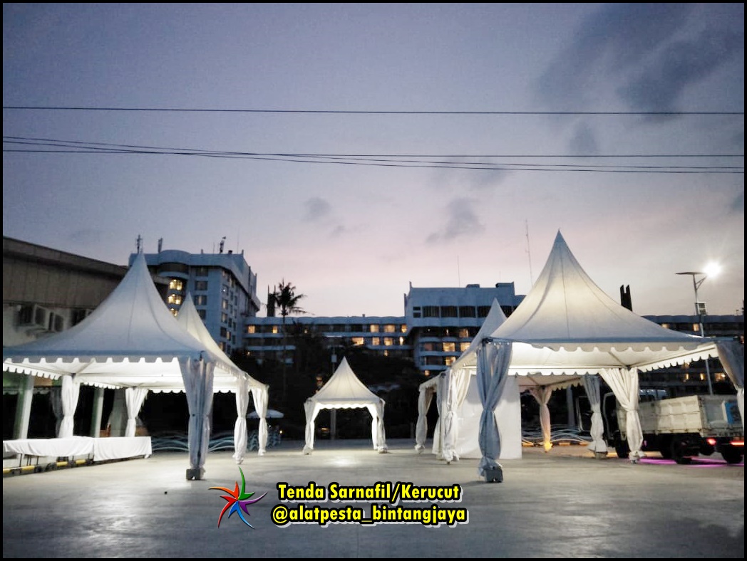 Sewa Tenda Sarnafil ( Kerucut ) Promo Tahun Baru kami jasa sewa kebutuhan alat pesta terlengkap dan termurah dengan kualitas terjamin pelayanan 24 jam siap support segala jenis event diberbagai wilayah seperti jabodetabek dan sekitarnya.
