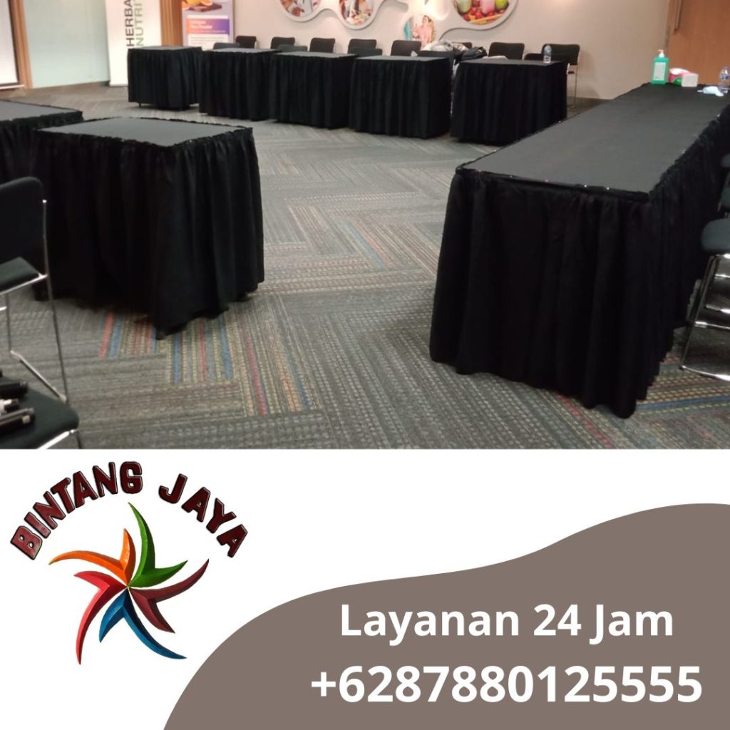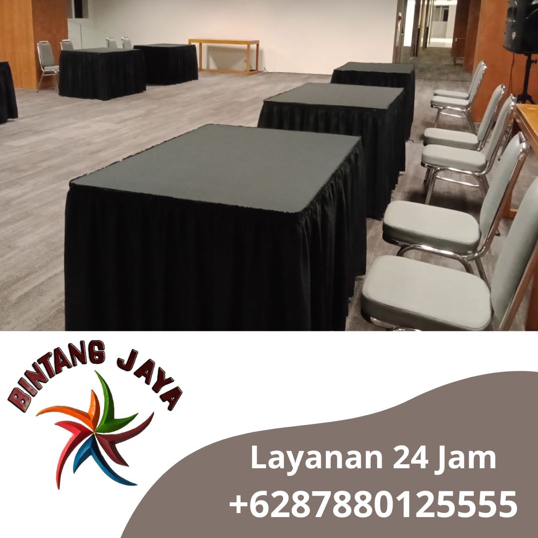 Bintang jaya event adalah perusahaan yang berkembang di jasa sewa alat pesta di kawasan jabodetabek, Kami menyediakan banyak stok yang melimpah jadi anda tidak usah khawatir produk kami elegan serta mewah salah satunya Sewa Meja Kotak 120x60cm Taplak Hitam Area Bogor.