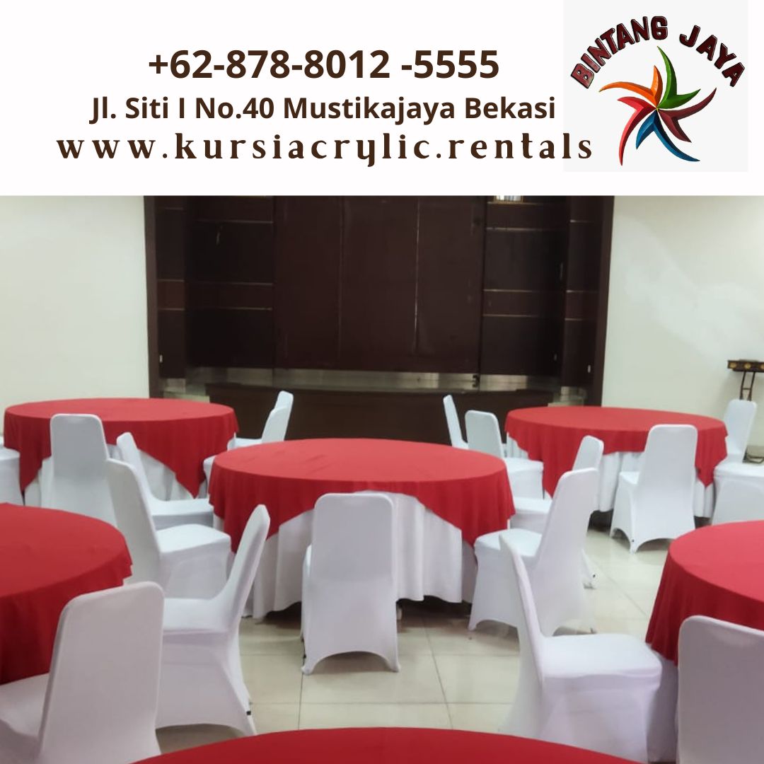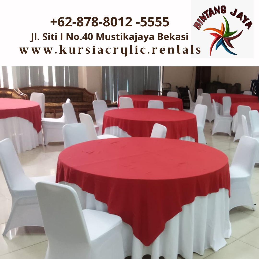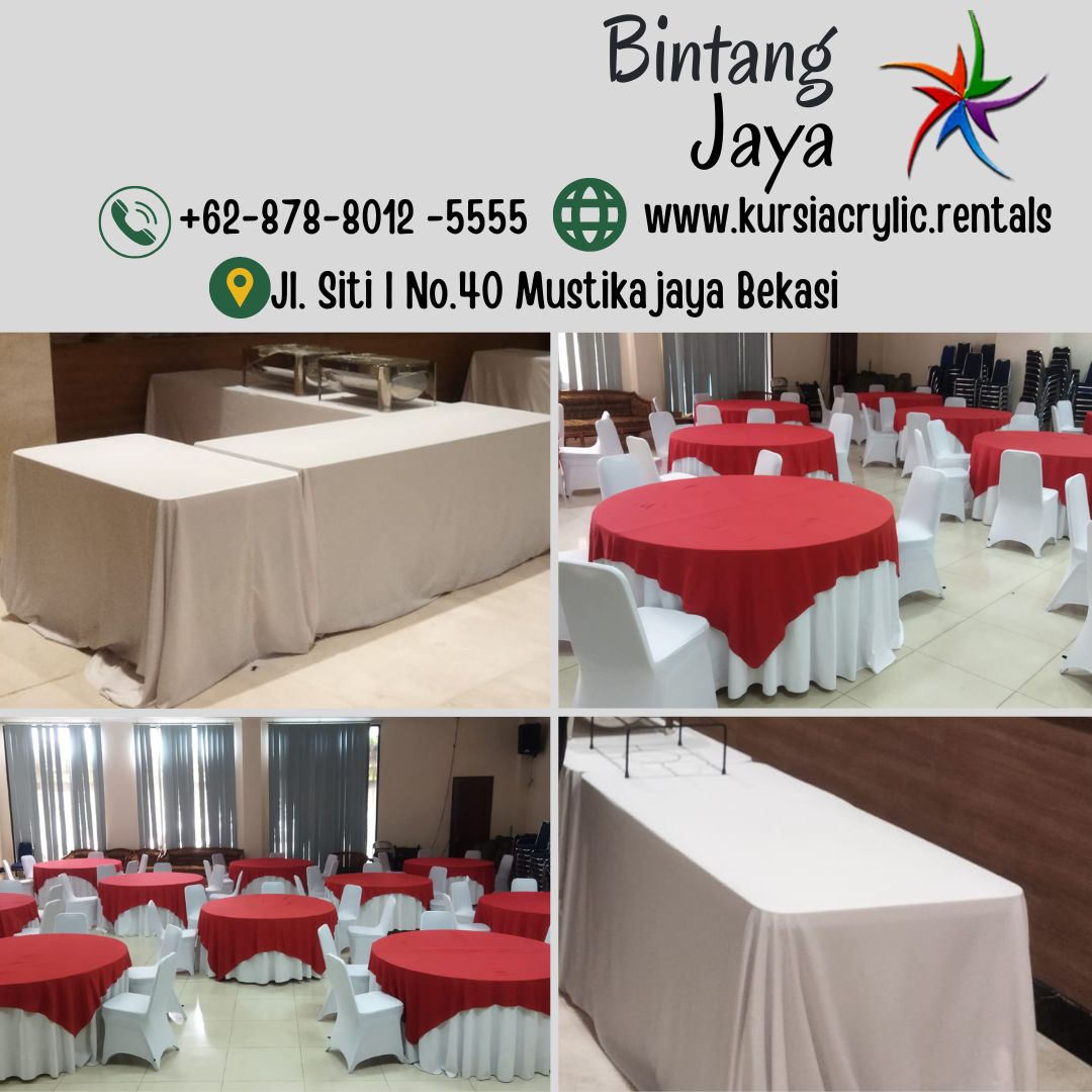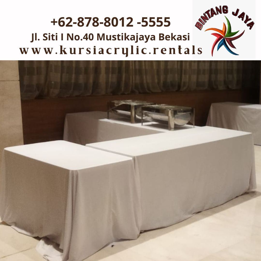 7. Meja Prasmanan baik kotak maupun bundar ( Warnna Cover atau Taplak : Putih, Hitam, Ungu, Merah, Marun, Hijau, Biru, Gold, Krem )
