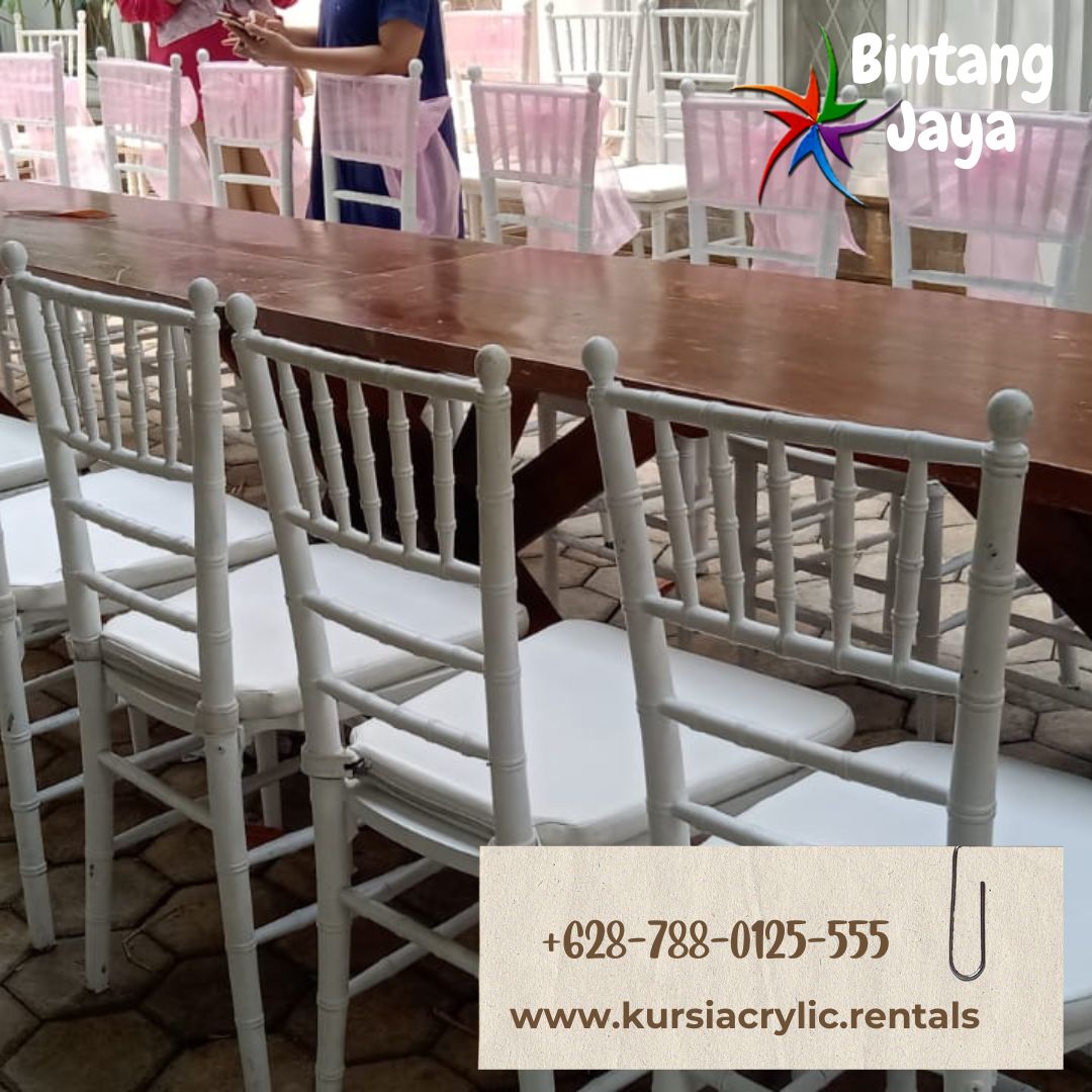 Sewa kursi tiffany putih kayu jati sangat menguntungkan, terutama jika Anda tidak ingin membeli kursi yang akan jarang digunakan. Dengan menyewa, Anda bisa menghemat biaya serta ruang penyimpanan. Hal ini juga memungkinkan Anda untuk memilih jumlah kursi sesuai kebutuhan, tanpa harus memperhatikan ukuran tempat tinggal Anda setelah acara selesai.