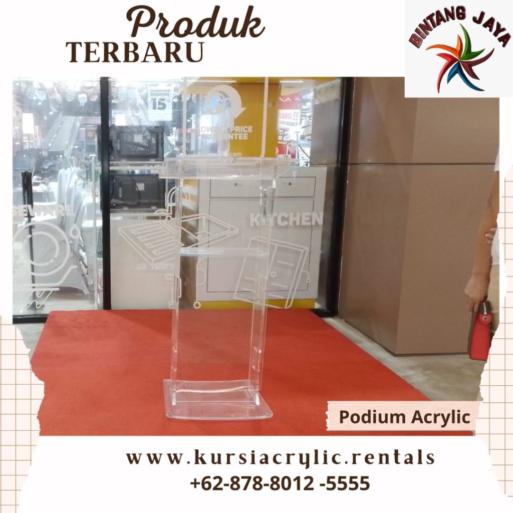 Sewa Podium Kotak Acrylic Area Terdekat Jakarta adalah pilihan ideal untuk berbagai acara. Ramping, elegan, dan fungsional, podium ini sering digunakan di seminar, pernikahan, atau acara korporat. Bagi mereka yang mencari tempat sewa podium kotak acrylic area terdekat Jakarta, banyak opsi yang tersedia untuk memenuhi kebutuhan acara Anda.