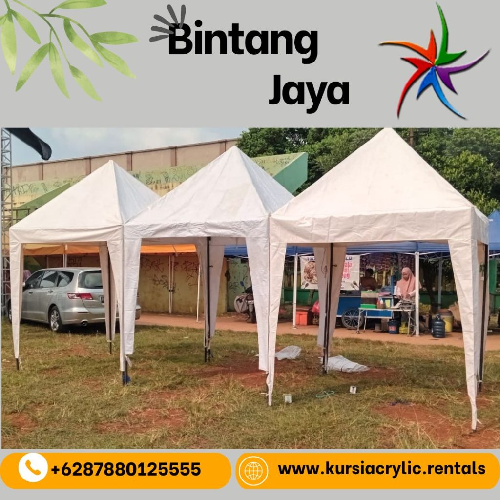 Bintang Jaya menyedikan beberapa sewa alat pesta, Ketika merencanakan suatu acara atau bazaar di Jakarta, memilih tenda yang tepat adalah hal yang penting. Salah satu pilihan populer adalah Sewa Tenda Type Bazzar Atap Lancip Putih Ukuran 2x2m Jakarta. Model tenda ini tidak hanya estetis, tetapi juga sangat fungsional untuk berbagai jenis acara.