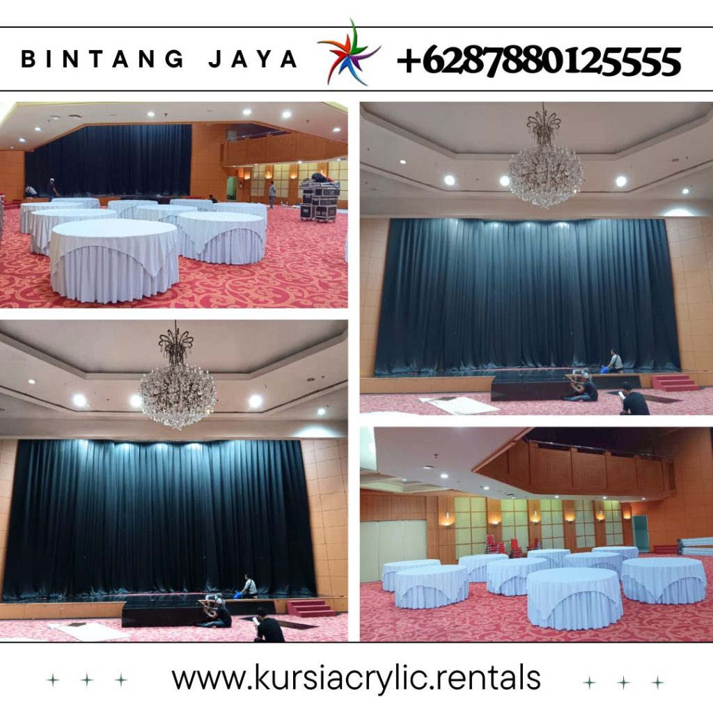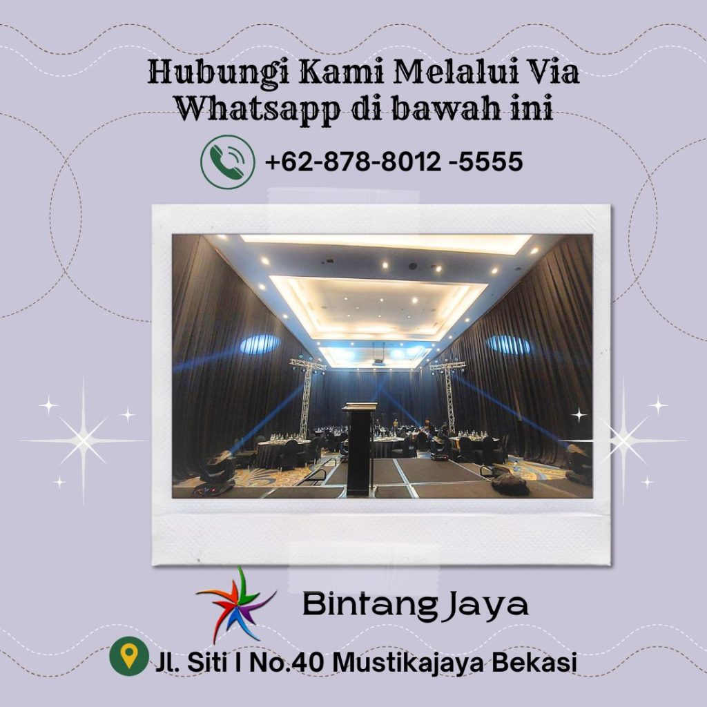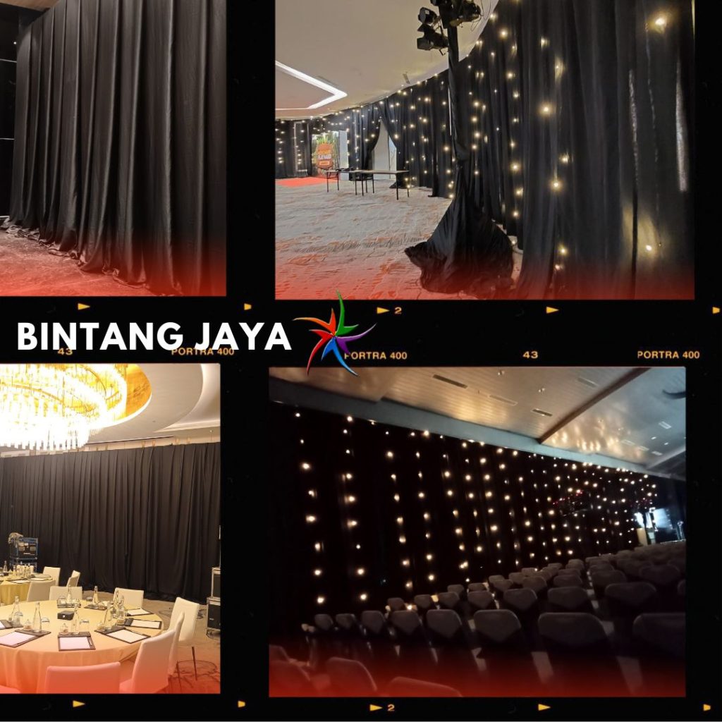CV. Bintang Jaya Event tersedia Tiirai hitam panggung merupakan salah satu kebutuhan penting dalam menunjang berbagai acara, baik itu konser, pameran, atau pertunjukan teater. Sewa Tirai Hitam Panggung Rigging Bahan Lotto Tebal Bandung ini tidak hanya berfungsi sebagai elemen estetika, tetapi juga sebagai alat untuk menciptakan suasana yang tepat dan profesional.