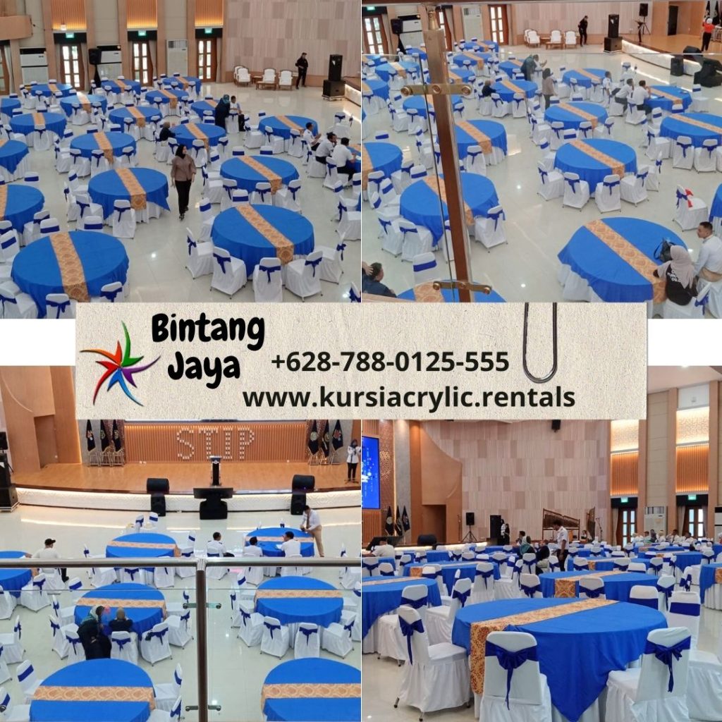 Produk Meja Bundar kami dilengkapi taplak meja berkualitas & Berkelas sehingga Meja tampak bagus bersih, cantik dan mewah. Meja Bundar kami Tersedia beberapa pilihan ukuran, warna dan model taplak meja Pilihlah taplak meja sesuai tema acara maupun selera anda agar event anda tampak cantik dan Seirama.